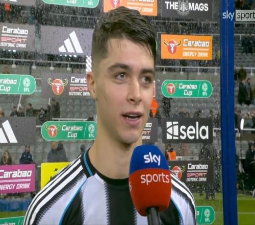 英联杯1/4决赛,卫冕冠军纽卡斯尔联2-1绝杀富勒姆。补时阶段打入绝杀进球的小将刘易斯-米利接受了天空体育的...