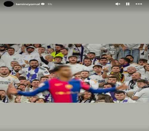 而今,巴萨即将再次做客伯纳乌对阵皇马,亚马尔在此时将这张照片发出,想必带有不少的挑衅意味。