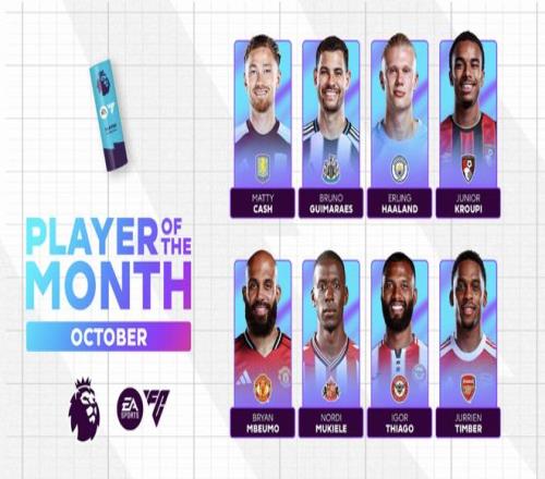 雷速体育10月30日宣 英超官方公布了10月最佳球员的候选名单,其中,哈兰德、姆伯莫、廷贝尔、吉马良斯在列。