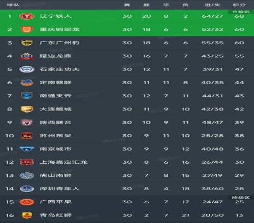 北京时间11月8日,中甲联赛第30轮的比赛全部结束,冲超和降级的球队出炉,我们一起看看最终的积分榜!