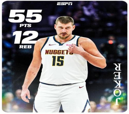 这场比赛的55分,不仅追平了由亚历山大保持的本赛季NBA单场得分纪录,更对约基奇个人意义非凡——这是他职业生涯首次在砍下50+得分的同时带领球队赢球,此前的纪录(包括季后赛)为尴尬的0胜4负。这也是约基奇个人职业生涯中第三次得分达到55+,凭借此次表现,他的55+场次已经与卡尔-安东尼·唐斯持平,并列成为NBA历史内线球员中第二多的存在,仅次于传奇威尔特·张伯伦的72次。