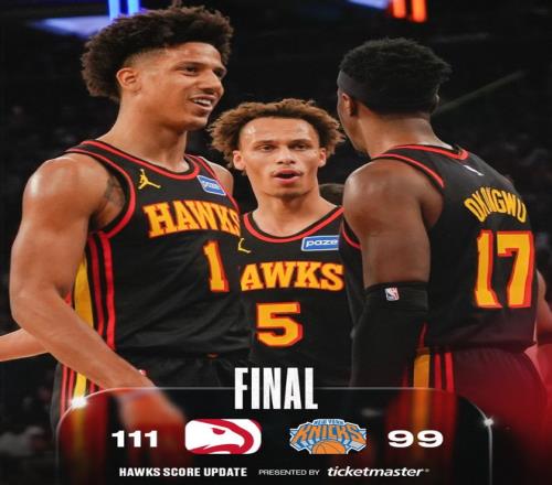 北京时间1月3日,老鹰客场111-99大胜尼克斯。这场比赛尼克斯的唐斯、米罗、哈特都轮休,所以开场尼克斯就被老鹰压制,次节一波17-27全线崩溃,第三节23-34等于直接缴械,布伦森22中10+三分8中1效率也不佳。