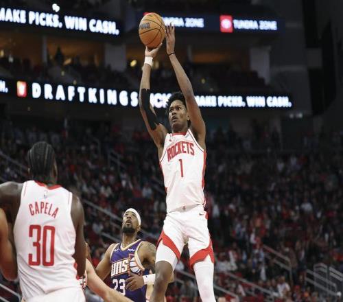 三分投篮一直不是火箭队的强项。本赛季火箭队更多地依靠申京的内线进攻、杜兰特的中距离干拔得分、阿门·汤普森的内线突破,以及他们抢到前场篮板之后的二次上篮得分,这些才是火箭队主要的进攻手段。根据统计显示,申京缺阵之后,火箭队提升了他们的三分出手数量,但是他们的三分命中率特别低,只有23%左右。